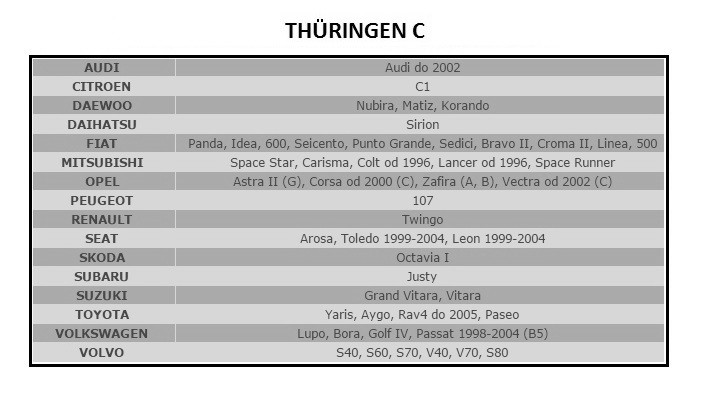 Praktikus THURINGEN autószőnyegek készlete, mely szőnyegek szakszerű kivitelezéssel, tartós és erős szőnyegszövetből készültek, rendkívüli módon kopásállóak is. Az anyag, amelyből készültek, a szőr egyedi struktúrájával rendelkezik, mely megtartja a cipőről lejövő homokot, port és egyéb szennyeződéseket. A folyadék állagú anyagok, melyeket a cipőn behordunk a kocsiba, beszívódik az anyagba. A szőnyegek rendkívül tartósak és erősek, ugyanakkor elegánsak és ízlésesek. Nagyon könnyű kitisztítani őket, és elkerülni azt, hogy a kocsi padlóját külön tisztítani kelljen. A sofőr lába alatti szőnyegrészt plusz műanyag réteggel erősítettük meg, mely megtartja a szennyeződéseket. A gumiból készült laminált réteg megakadályozza a szőnyeg elcsúszását.