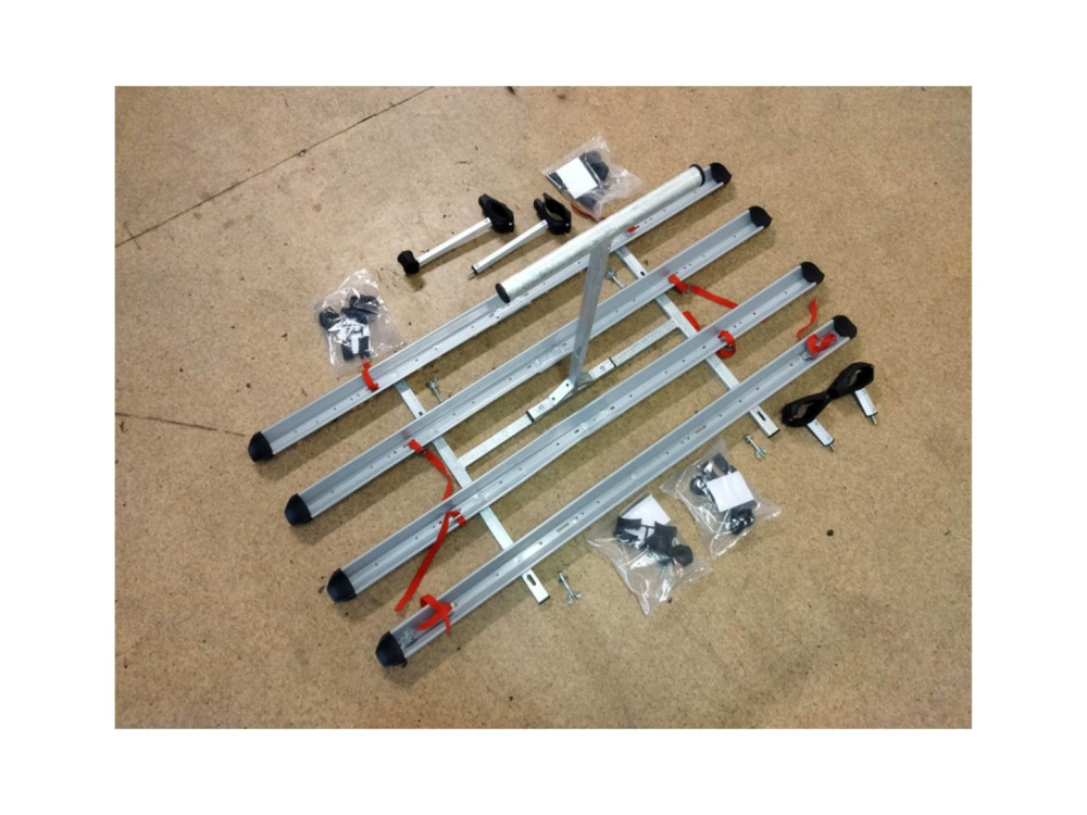 Vas, tűzihorganyzott adapter konstrukció, kerékhornyok, 4 kézi keréktartó, összekötő anyag, kötőszalagok.