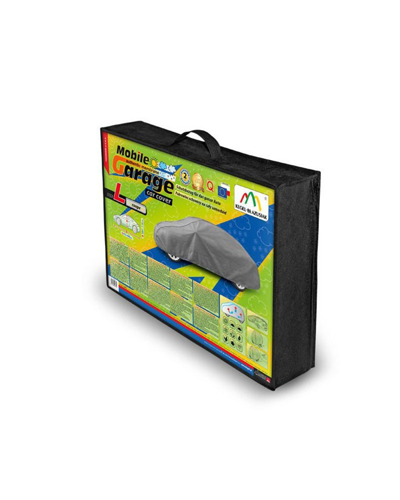 A Kegel-Błażusiak Mobile Garage autóponyva egy felső-közép kategóriás autóponyva, amely kiemelkedő minőségű, prémium jellegű védelmet nyújt egész évben, megbízhatóan óvva autóját az időjárás és a szennyeződések hatásaitól. Fejlett 4 rétegű szerkezete biztosítja a vízállóságot és a légáteresztést, így hatékonyan védi a járművet a korróziótól, penésztől, UV-sugárzástól és karcolásoktól. Ideális választás azok számára, akik a Basic és az Optimal Garage szintjénél fejlettebb, tartósabb megoldást keresnek.