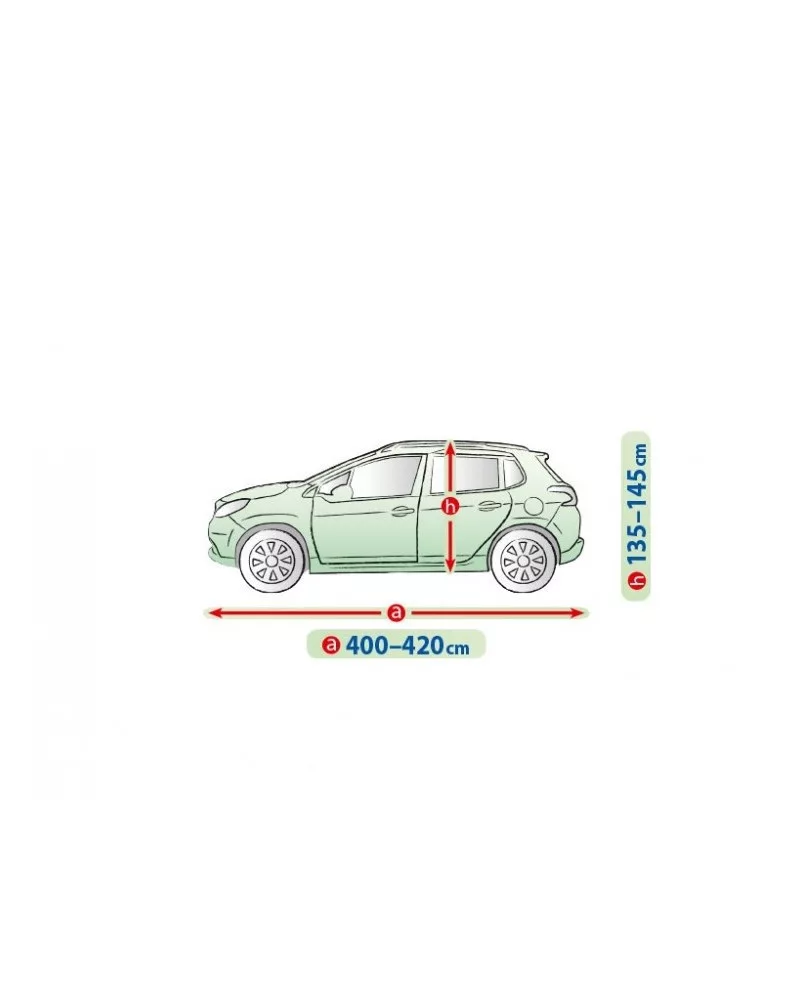 A ponyva textilanyaga egy kicsivel kisebb és egy kicsivel nagyobb, hasonló alakú és a fent megadott kerületet nem meghaladó méretű autóra is ráillik.