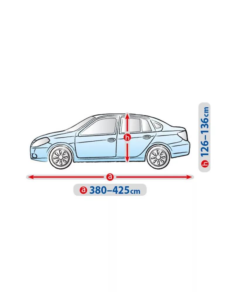 A végső méret az autó kerülete, a lökhárító magasságában mérve (az autó kerülete nem haladhatja meg a leírásban megadott ponyvaméretet – valamivel kisebbnek vagy azonosnak kell lennie).