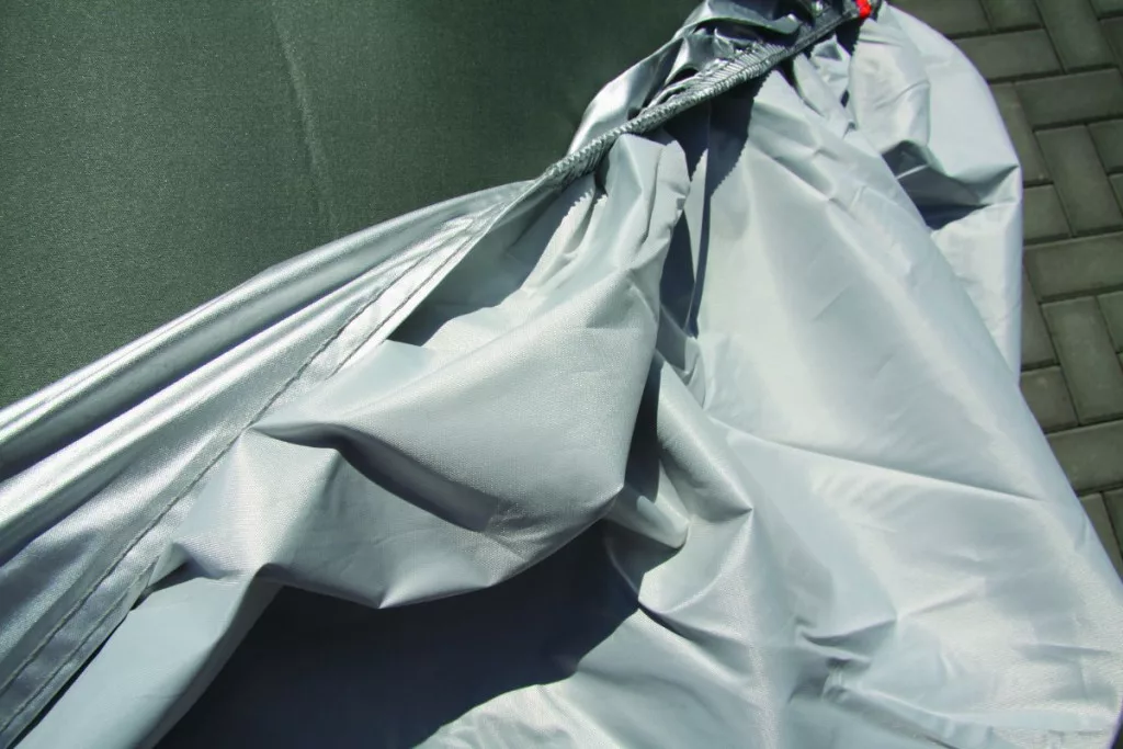 A ponyva könnyen felhelyezhető, a bevarrt pánt és a rugalmas szegélyek biztosítják a stabil tartást. Az elöl, hátul és oldalt elhelyezett fényvisszaverő elemek javítják a jármű láthatóságát és biztonságát.