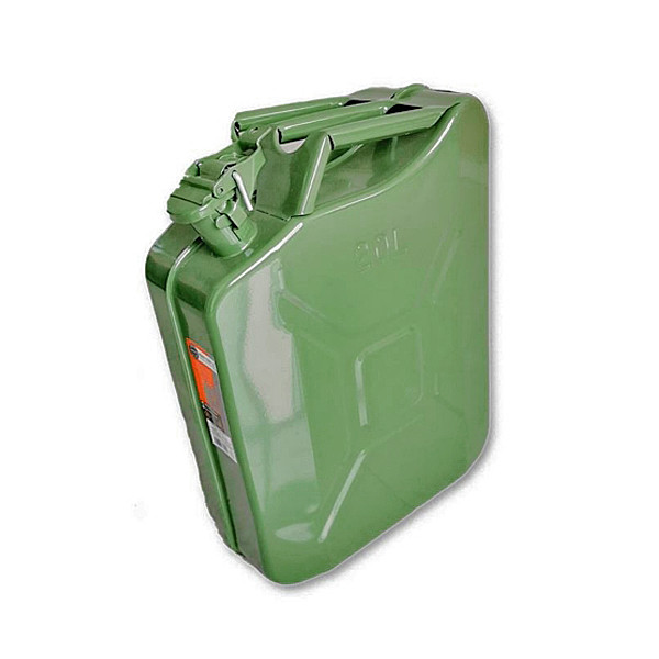 Fém üzemanyagkanna, ideális különféle típusú folyadékok biztonságos tárolására és szállítására. Robusztus felépítése garantálja a hosszú élettartamot és a sérülésekkel szembeni ellenállást. 20 literes űrtartalommal