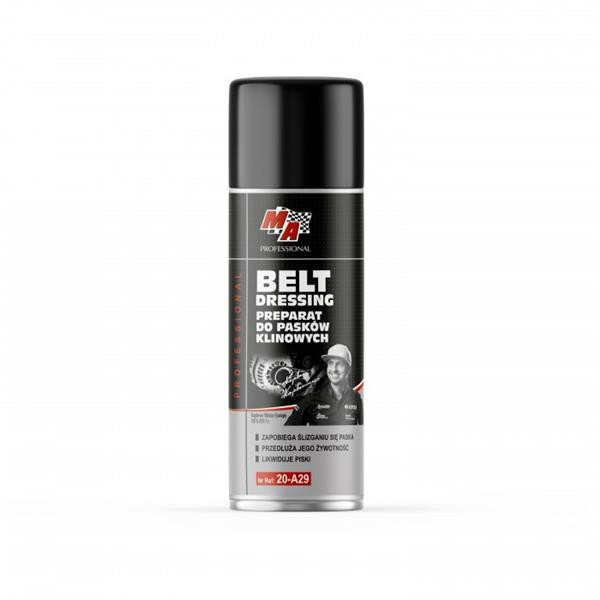 A készítmény speciális formulája biztosítja az ékszíjak megfelelő működését és kiküszöböli azok csúszását.Mélyen behatol az anyagba, meghosszabbítva a szíj élettartamát és megőrzi a feszességét.Alkalmazása: gumiból, bőrből és egyéb anyagokból készült ékszíjak és erőátviteli szíjak, ipari övek. Használata: Használat előtt kb. 3 percig alaposan rázza fel. Indítsa be a motort, és vigye fel a készítményt az öv belsejére. Várjon néhány percet. Szükség esetén ismételje meg.