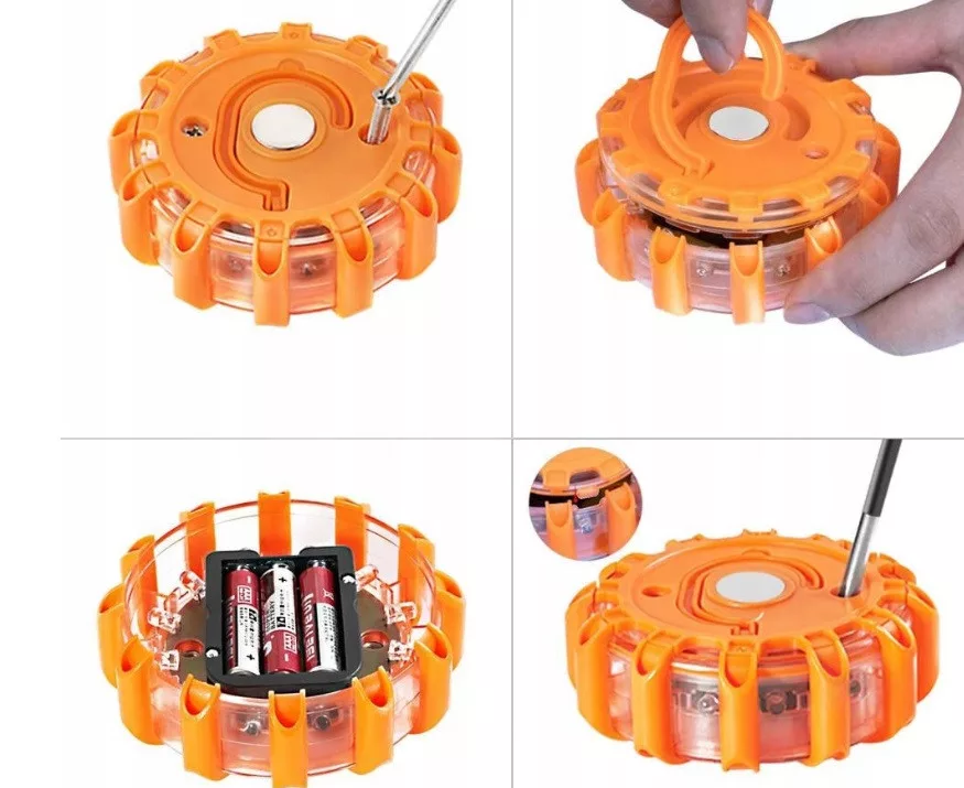 Elakadást jelző biztonsági narancssárga villogó LED lámpa, mágneses, elemes – Bright Ride