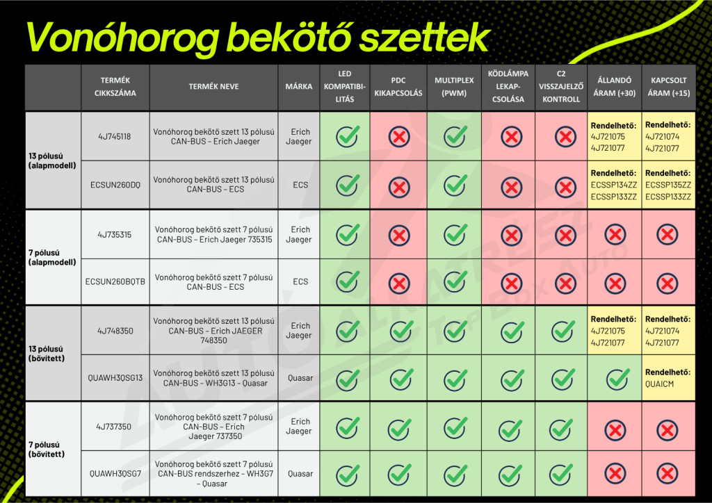 Vonóhorog bekötő szett 7 pólusú CAN-BUS rendszerhez – WH3G7 – Quasar