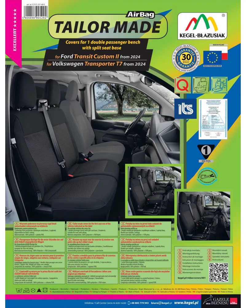 Méretpontos Üléshuzat Ford Transit Custom II. 2023-tól jobb első, asztal nélküli ülésre – TAILOR MAD