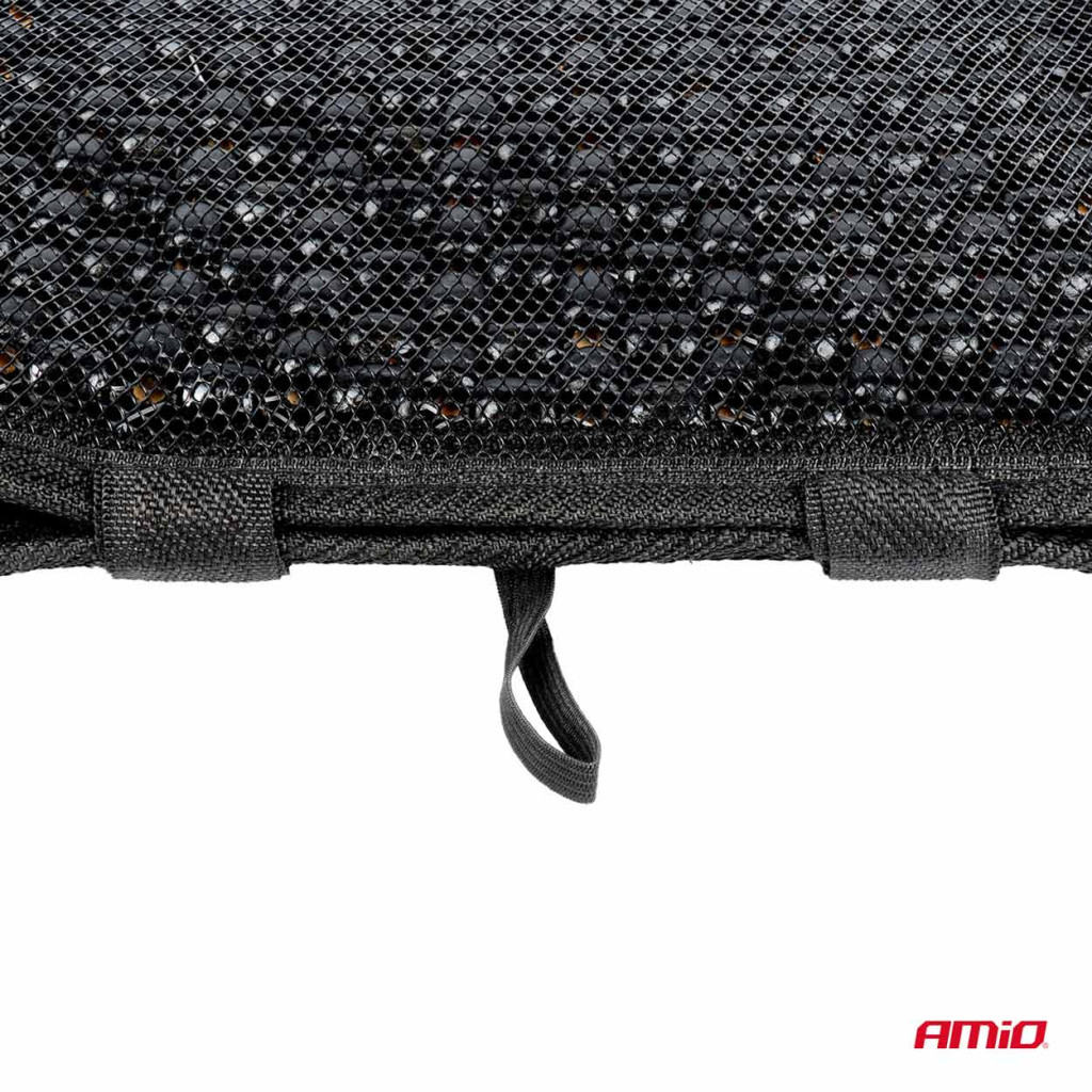 Bársonnyal díszített golyós üléshuzat. A gyöngyök masszázs hatást biztosítanak, megszüntetik a fáradtságot és kényelmessé teszik a hosszú távú ülést.