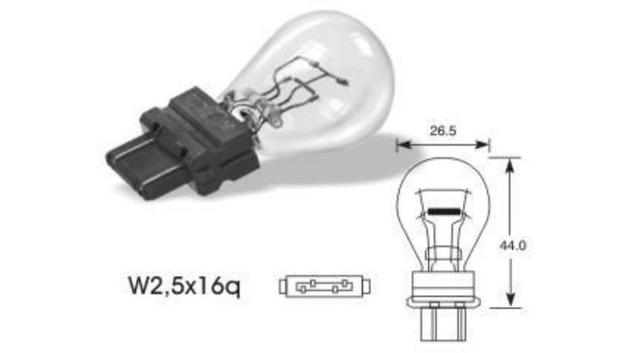 Izzó 12V P27/7W Sárga duplaszálas USA WX2,5x16q – Elta