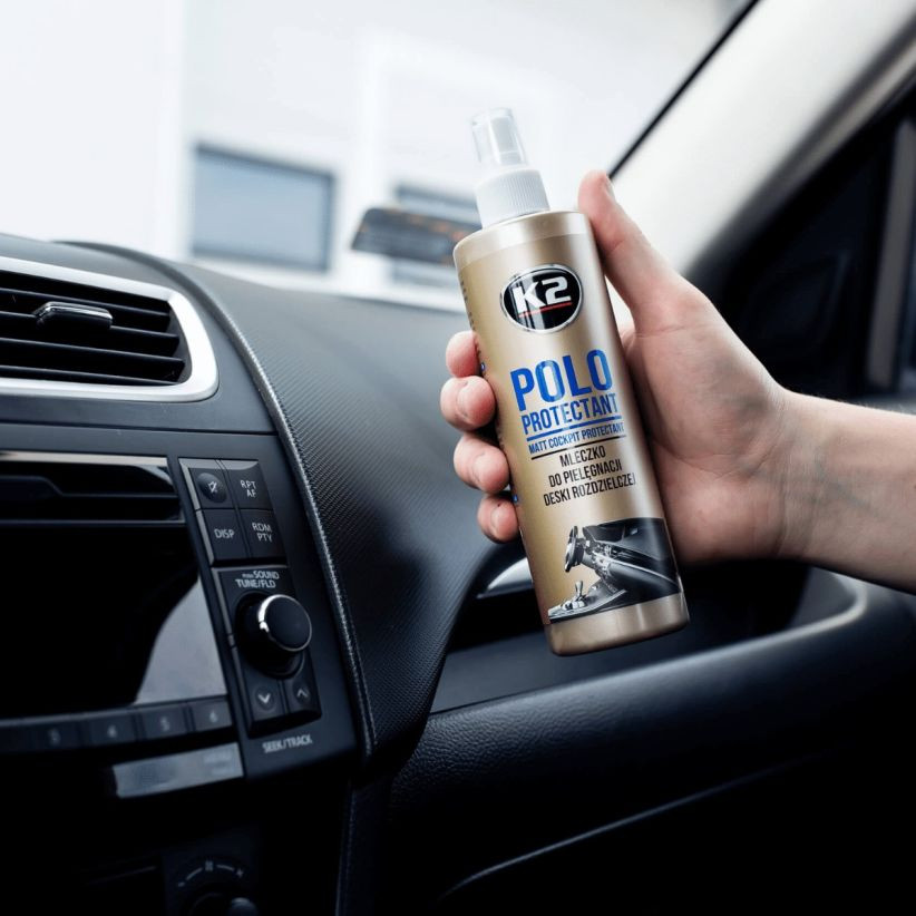 A K2 POLO PROTECTANT MAT egy nagyon hatékony műszerfalápoló szer. Visszaállítja az eredeti, matt megjelenést, túlzott fényesség nélkül. Ennek köszönhetően csökkenti a zavaró fényvisszaverődést, különösen napsütéses napokon.