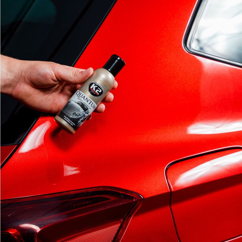 A K2 QUANTUM kivételes hatékonyság jellemzi, mindössze 50-70 ml elegendő az egész autó gyantázásához, és könnyű és kellemes felvitele, felvitele és lelapolása nem igényel Kényszerítés.