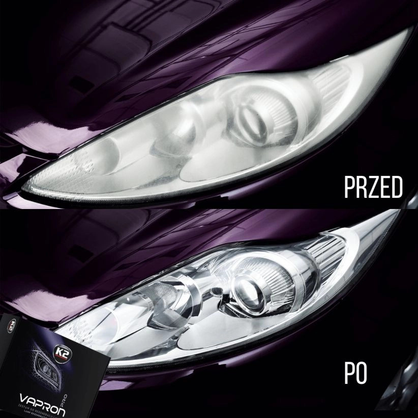 A K2 Vapron készlet eltávolít minden karcolást, elszíneződést és elhomályosodást. Tökéletes a sérült (tompult, megsárgult) fényszórók helyreállítására, függetlenül az autó korától és a lámpák sérülésének mértékétől.