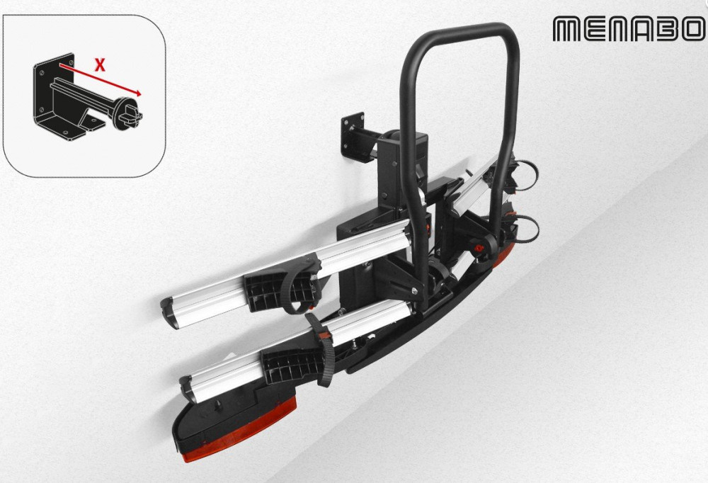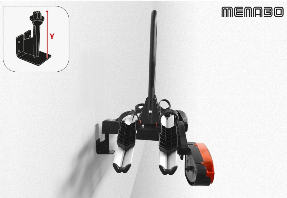 MENABO fali kampó egy nagyon praktikus fali tartó vonóhorogra szerelehető kerékpárszállítókhoz, ami segítségével kényelmesen tárolhatja a kerékpárszállítóját függőlegesen és víszintesen egyaránt.