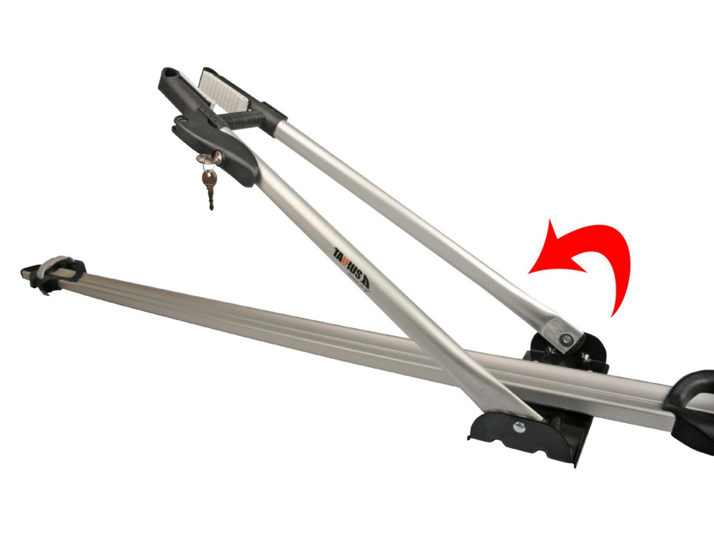 • Modern, aerodinamikus, univerzális alumínium, tetőre szerelhető TAURUS bicikliszállító egy biciklihez.