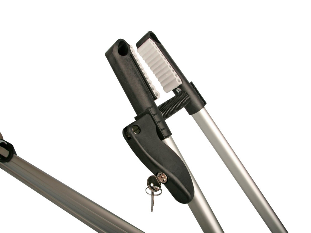 • Egyszerűen és biztonságosan rögzíthető a bicikli a stabil tartókeretnek köszönhetően. A szállító a tetőcsomagtartó rúdjaihoz szerszámok nélkül rögzíthető.