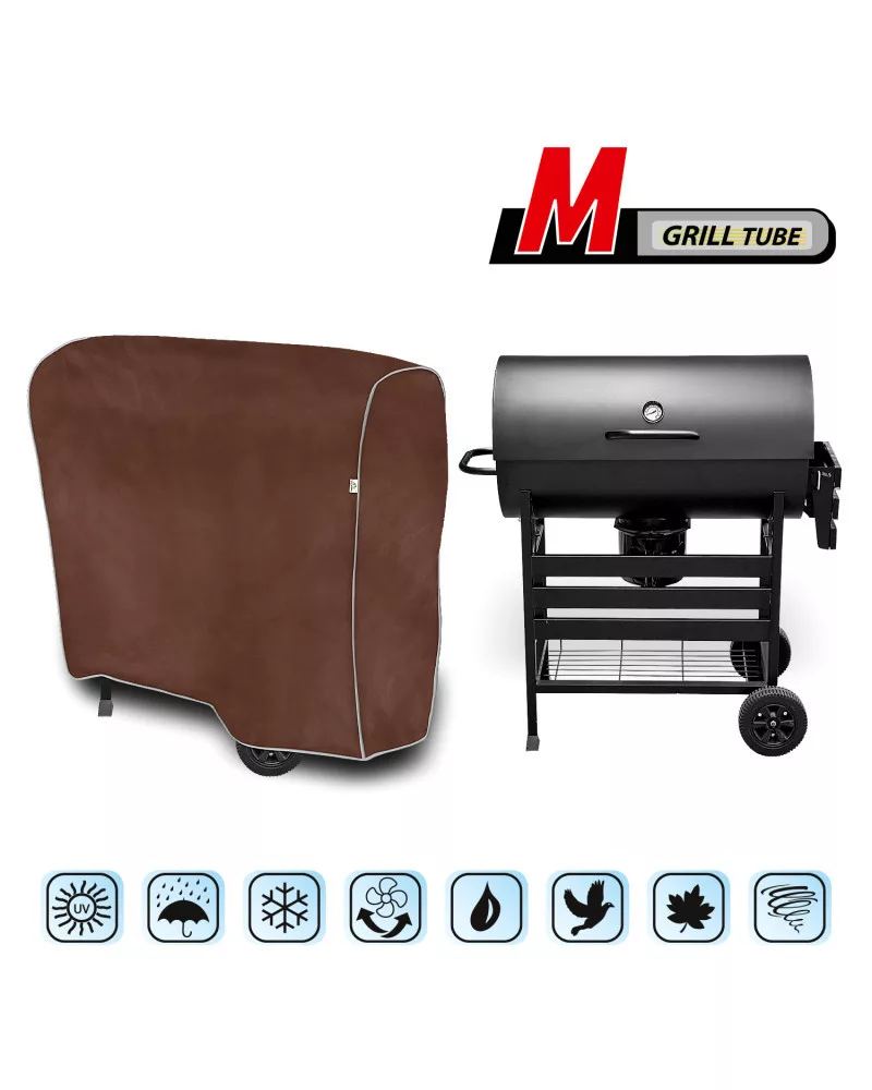Vízálló, és a kedvezőtlen környezeti hatásokkal szembeni védelmet nyújtó huzat szabadban tárolt kerti gáz- vagy szén tüzelésű grillsütőhöz. Beltéri használatra is alkalmas. Védi a kerti grillsütőt az esőtől, hótól, fagytól és a napsugaraktól (káros UV-sugárzástól), valamint az olyan szennyeződésektől, mint a por, madárürülék és fanedvek. Vízálló, egész évben használható védőhuzat, mely teljesen ellenálló az időjárási hatásokkal szemben.