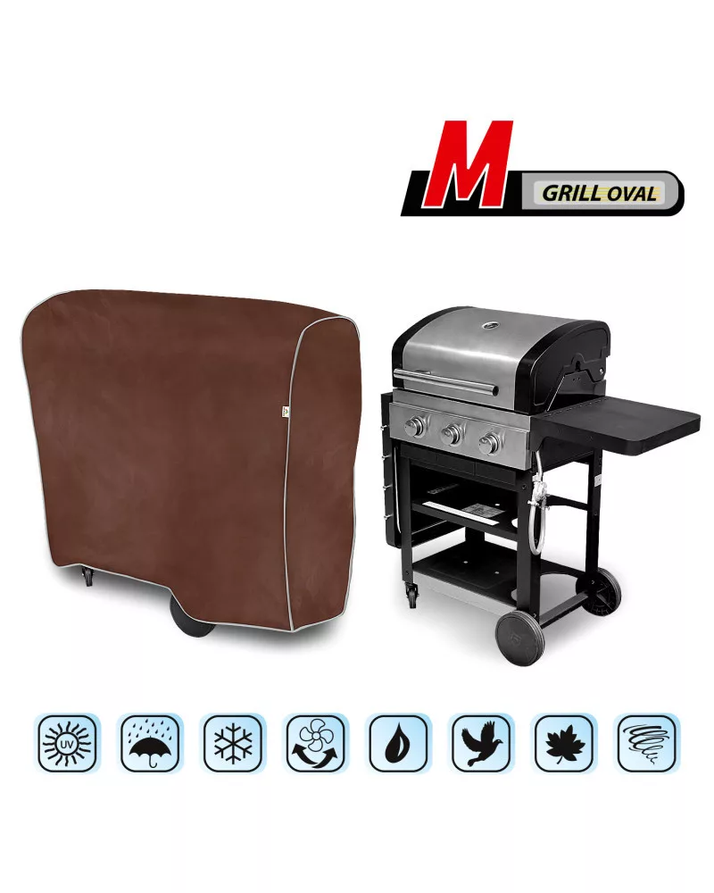 Vízálló, és a kedvezőtlen környezeti hatásokkal szembeni védelmet nyújtó huzat szabadban tárolt kerti gáz- vagy szén tüzelésű grillsütőhöz. Beltéri használatra is alkalmas. Védi a kerti grillsütőt az esőtől, hótól, fagytól és a napsugaraktól (káros UV-sugárzástól), valamint az olyan szennyeződésektől, mint a por, madárürülék és fanedvek. Vízálló, egész évben használható védőhuzat, mely teljesen ellenálló az időjárási hatásokkal szemben.