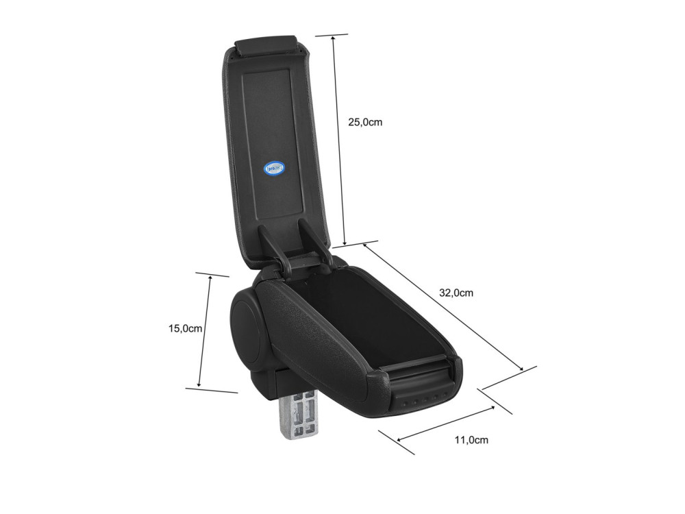 Pontosan illeszkedő könyöktámasz a jármű első ülései közé. Alkalmas apró dolgok benti tárolására és a vezető jobb kezének is kényelmet nyújt vezetés közben. A tartós műanyagból és tömör szövetből készült, kiváló minőségű kialakítás funkcionálisan kiegészíti a jármű belsejét.