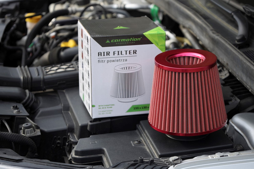 Sport / Direkt légszűrő 155x130x120 mm, piros, adapterek: 60, 63, 70 mm – Carmotion