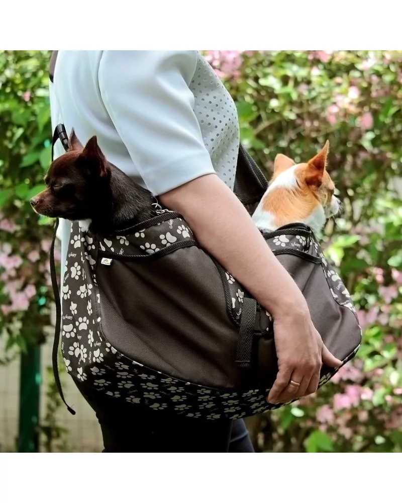 A gondosan kidolgozott kialakításnak köszönhetően a táskában hordott kutyák biztonságban és kényelmesen érzik magukat, a gazdi közelsége pedig tovább növeli a biztonságérzetet.