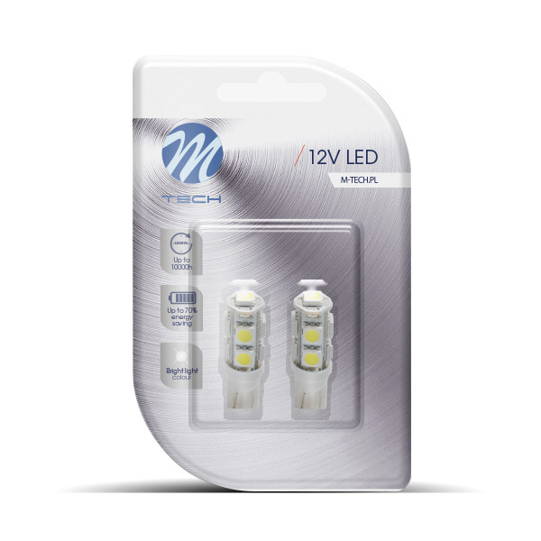 LED IZZÓ W5W 9-SMD 5050 2 DB FEHÉR – M-TECH