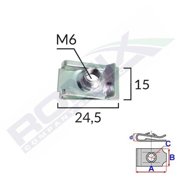 Méretek: A: 24,5 mm B: 15 mm C: M6 D: 6 mm