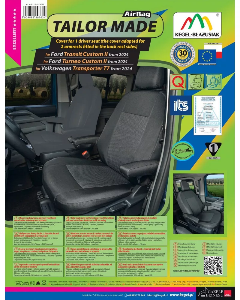 Méretpontos Üléshuzat Ford Transit Custom II. 2023-tól bal első 2 karfás ülésre – TAILOR MADE – KEGE