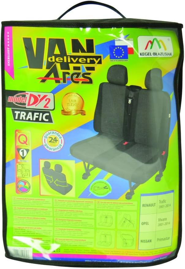 Az ARES huzatok – kényelmes és biztonságos huzatok, melyeket a szállítással foglalkozó autók és kisbuszok tulajdonosaira gondolván terveztek meg – szakszerű kivitelezésűek, lángra nehezen kapható, magas minőségű jaquard szövetből készülnek. Pontosan ilyen szövetből készülnek az autógyáraknak előállított fotelkárpitok. Gondos, pontos kivitelezésűek. A megfelelő szerkezetüknek és a megfelelő méreteknek köszönhetően nagyon jól illenek az adott autó üléseihez. Mivel a belső oldalukat PUR habbal laminálták, pontosan illeszkednek az ülésekhez. Az ARES huzatok jól védik a kárpitot az elhasználódástól, kosztól és károktól, valamint nagyon jól néznek ki a kocsi belsejében. A huzatok teljes egészében nagyon erős, tartós és vastag jaquard szövetből készültek. Az anyag fekete színű – a fekete szín és az elegáns szürke színű minta tökéletesen illik minden autó belső teréhez.