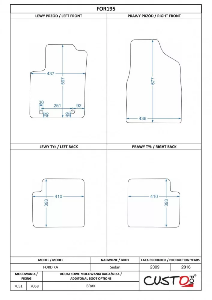 Méretpontos szövetszőnyeg garn. Ford KA II. 2008-2016 – Custo Pol