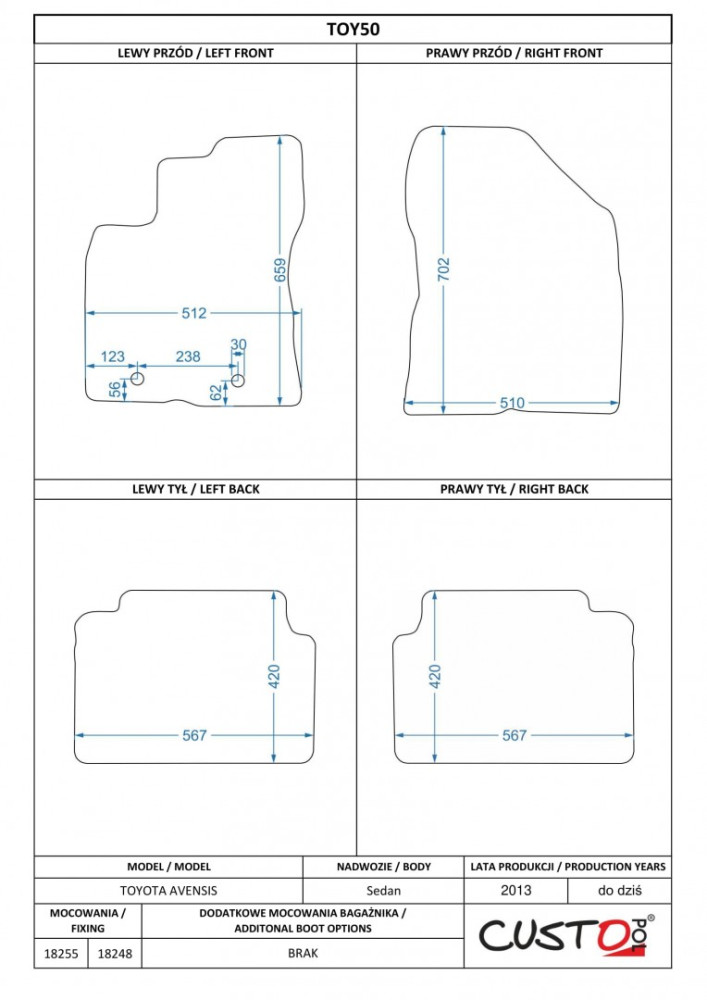 Méretpontos szövetszőnyeg garn. Toyota Auris II. (E180) 2012-2018 – Custo Pol