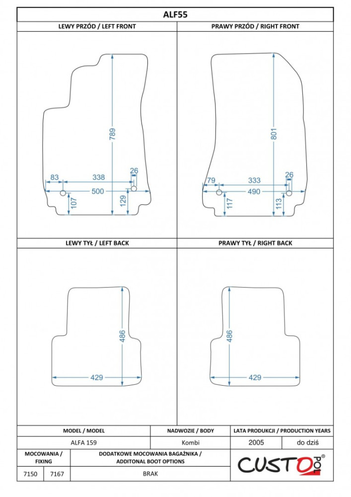 Méretpontos szövetszőnyeg garn. Alfa Romeo 159 2005-2012 – Custo Pol
