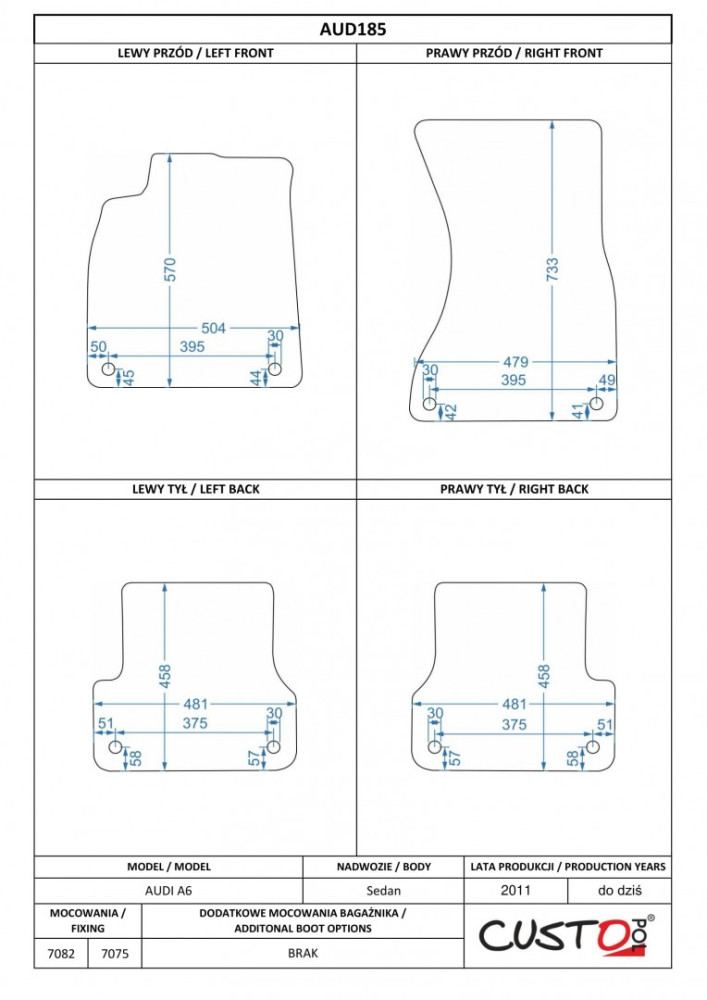 Méretpontos szövetszőnyeg garn. Audi A6 (C7) 2011-2018 – Custo Pol