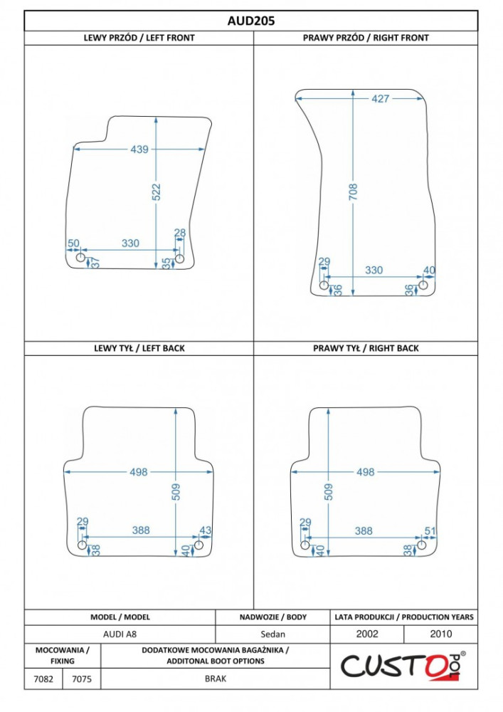 Méretpontos szövetszőnyeg garn. Audi A8 2002-2010 – Custo Pol