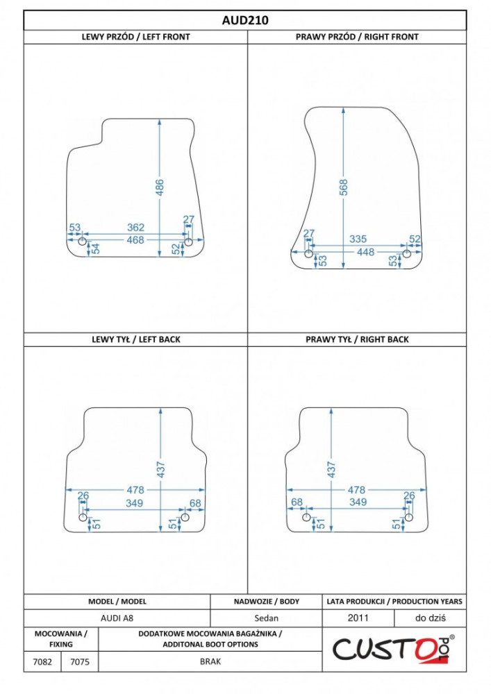 Méretpontos szövetszőnyeg garn. Audi A8 (D4) 2011-2018 – Custo Pol