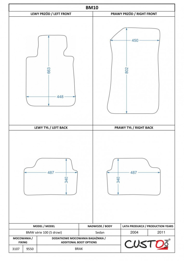 Méretpontos szövetszőnyeg garn. BMW 1 E87 2004-2011 – Custo Pol