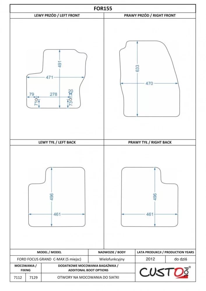 Méretpontos szövetszőnyeg garn. Ford C-Max II. 2010-2019 (5személy) – Custo Pol