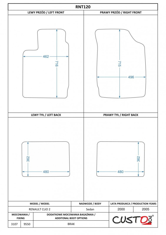 Méretpontos szövetszőnyeg garn. Renault Clio II. 1998-2005 – Custo Pol