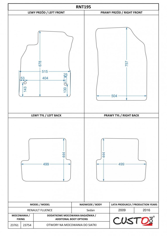 Méretpontos szövetszőnyeg garn. Renault Fluence 2010-2015 – Custo Pol