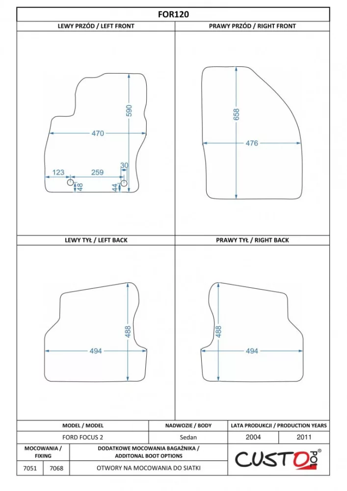 Méretpontos szövetszőnyeg garn. Ford Focus II. 2004-2011 – Custo Pol