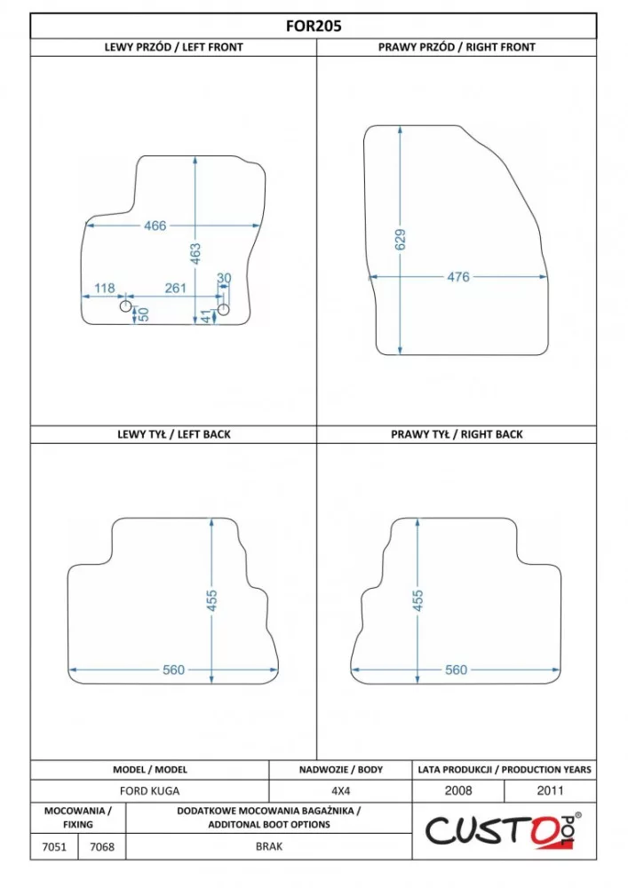 Méretpontos szövetszőnyeg garn. Ford Kuga I. 2008-2011 – Custo Pol
