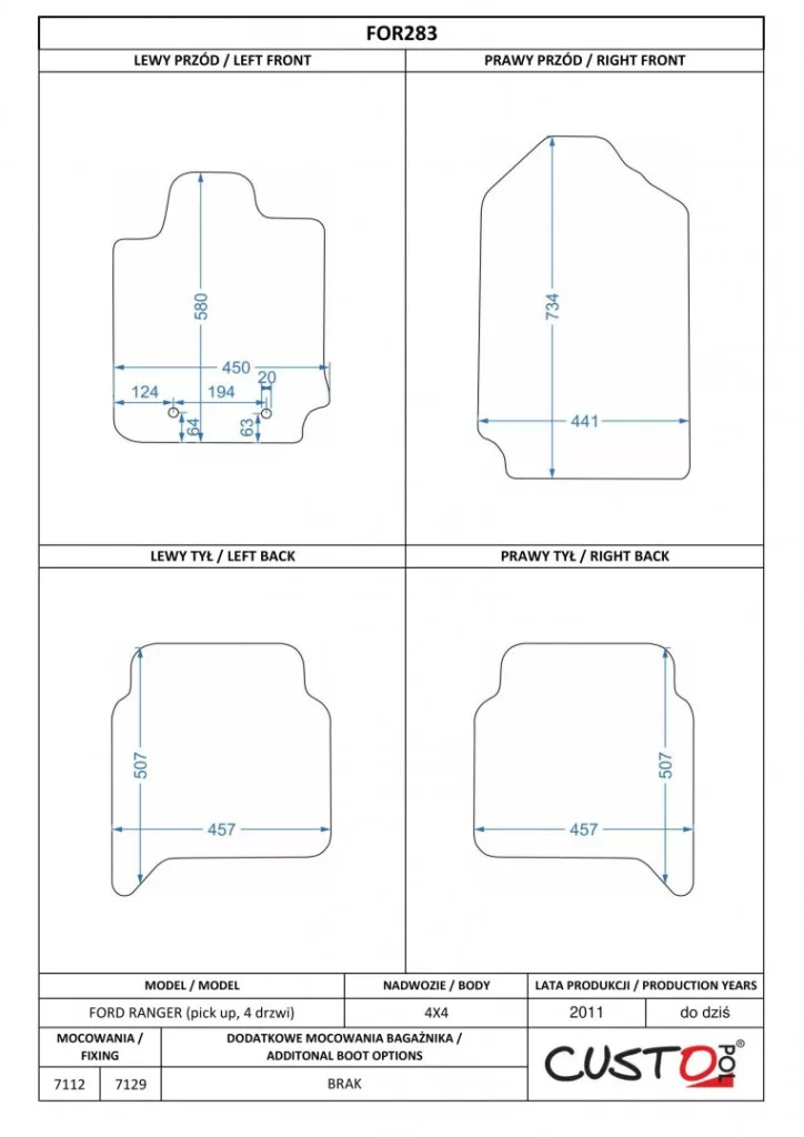Méretpontos szövetszőnyeg garn. FORD RANGER 2005-2012 (pick up-4 ajtós) – Custo Pol