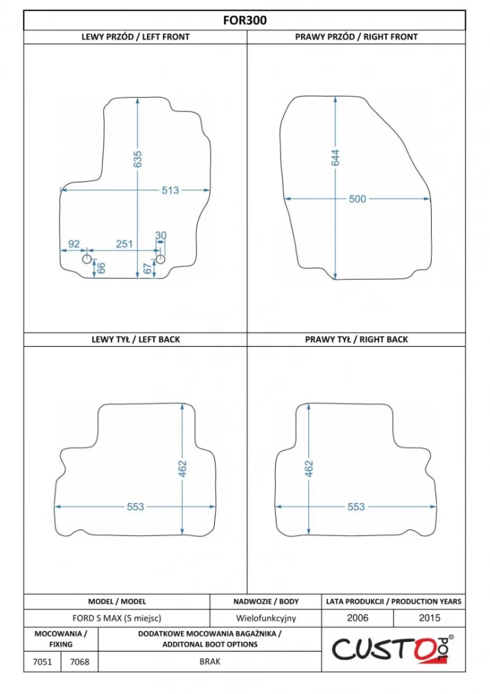 Méretpontos szövetszőnyeg garn. Ford S-Max I. 2006-2015 (5M) – Custo Pol