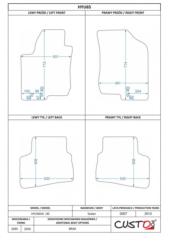 Méretpontos szövetszőnyeg garn. Hyundai i30 I. 2007-2012 – Custo Pol