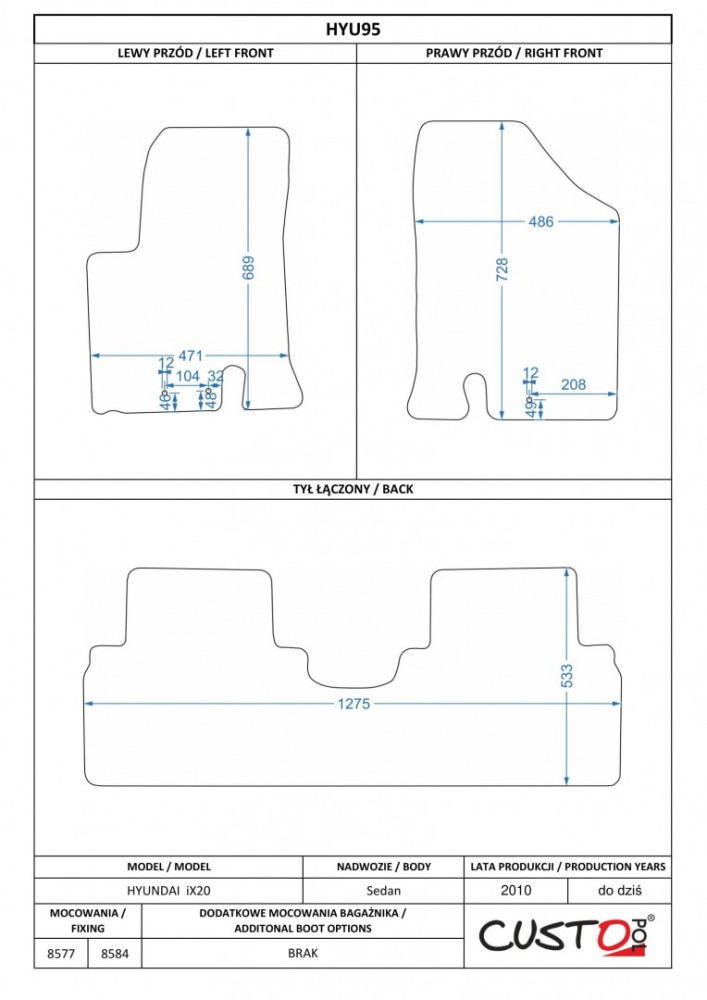 Méretpontos szövetszőnyeg garn. Hyundai iX20 2010-2019 – Custo Pol