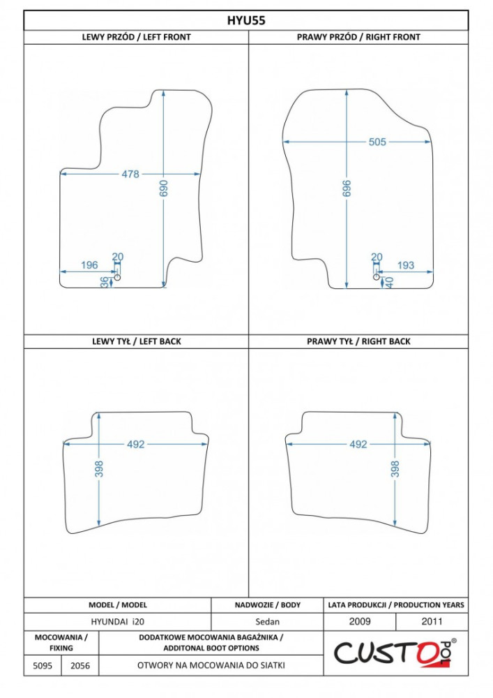 Méretpontos szövetszőnyeg garn. Hyundai i20 I. 2008-2015 – Custo Pol