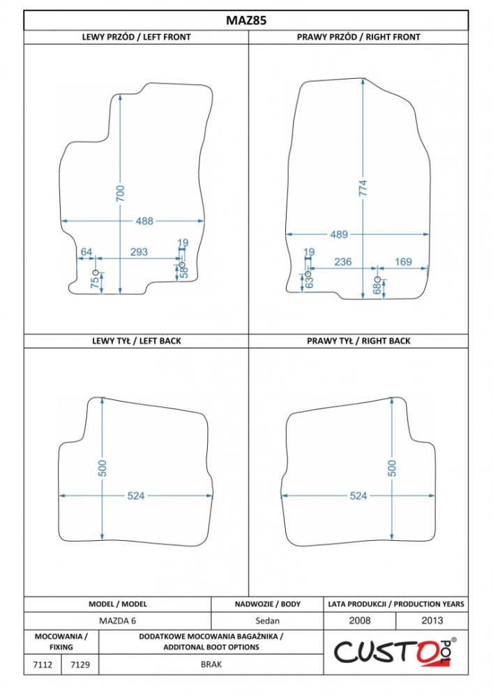 Méretpontos szövetszőnyeg garn. Mazda 6 II. 2008-2013 – Custo Pol