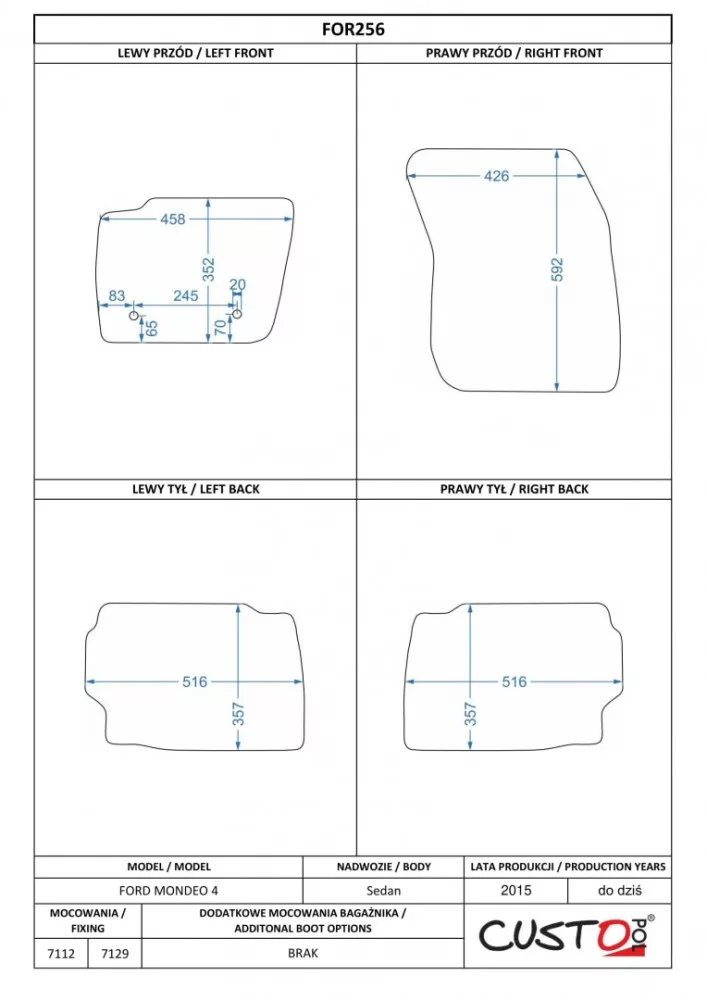 Méretpontos szövetszőnyeg garn. Ford Mondeo V. 2015- – Custo Pol