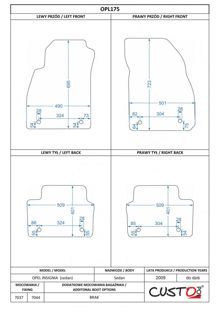 Méretpontos szövetszőnyeg garn. Opel Insignia A. 2009-2017 sedan – Custo Pol