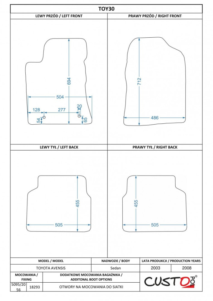 Méretpontos szövetszőnyeg garn. Toyota Avensis II. (T25) 2003-2008 – Custo Pol