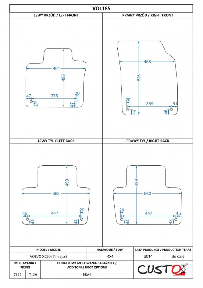 Méretpontos szövetszőnyeg garn. Volvo XC90 2014-től– Custo Pol